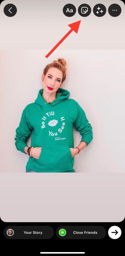 8. Don’t forget to tag Lesley Logan so she can see all your posts. You can simply tag her by tapping the ‘Aa’ text icon. Just type @lesley.logan