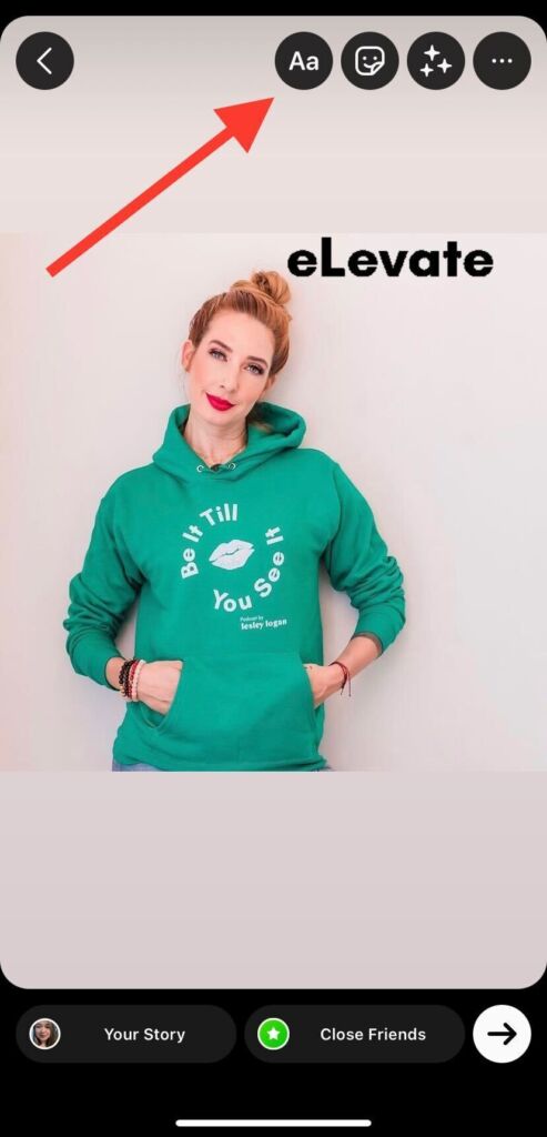 7. Once you’re happy with your image or video, tap the “Aa” icon in the top right corner of the screen to open the Text tool.