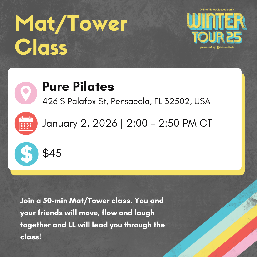 Join Lesley Logan for an in-person Pop Up Class on January 2, 2026 in Pensacola, FL!